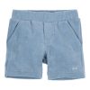 Bermuda van badstof in het blauw met steekzakjes en achterzakje.