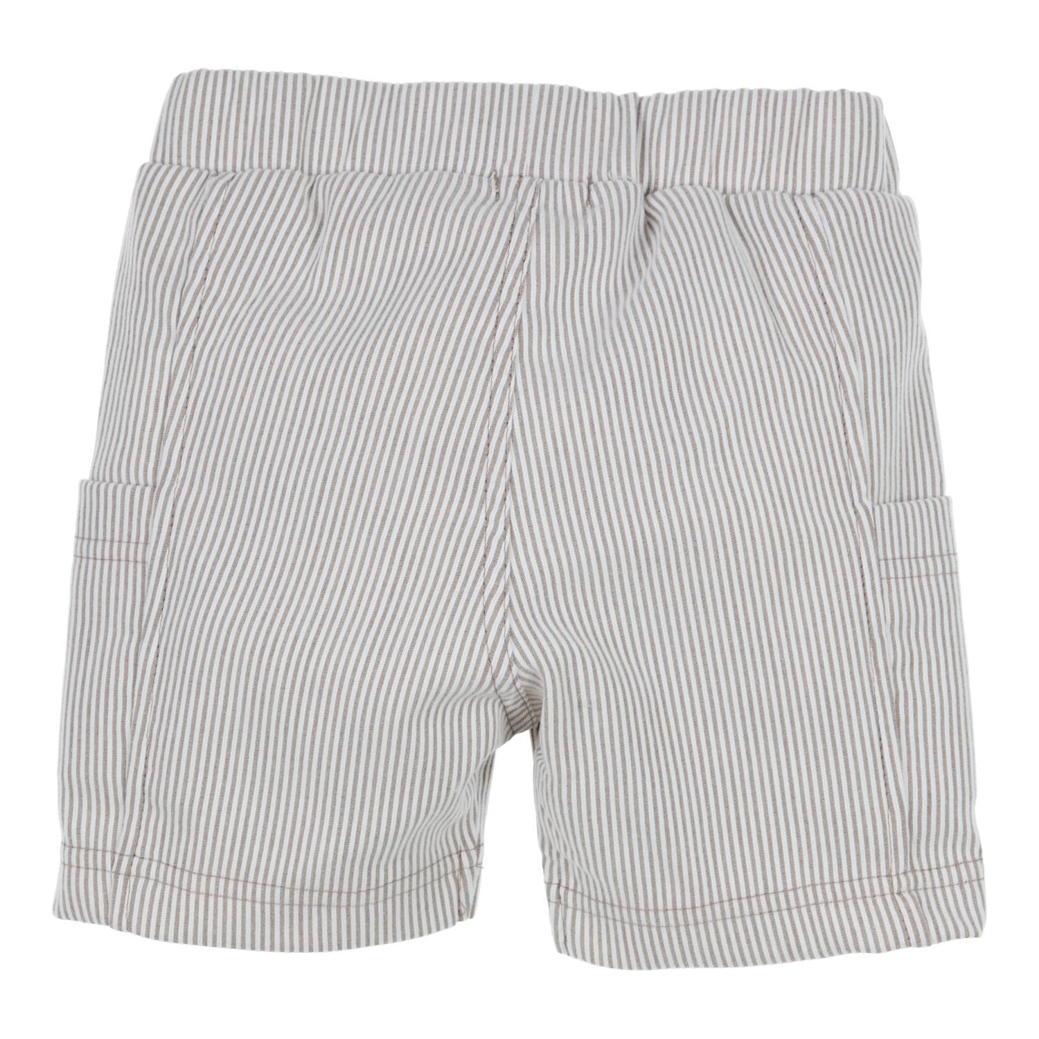 Bermuda in het wit-beige gestreept met steekzakjes.