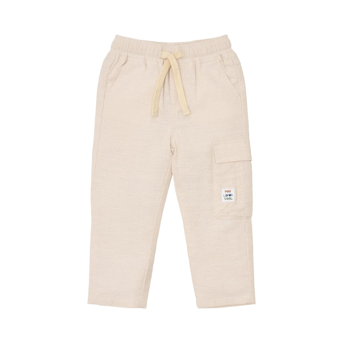Broek met cargo-zak in het beige. Broekje heeft ook steekzakjes en 2 achterzakjes en een volledige elastieke broekband. Stofsamenstelling volledig biologisch katoen(100%). Comfortabel en goed draag- en wasbaar. (OEKO TEX = Veiligheid Standard)