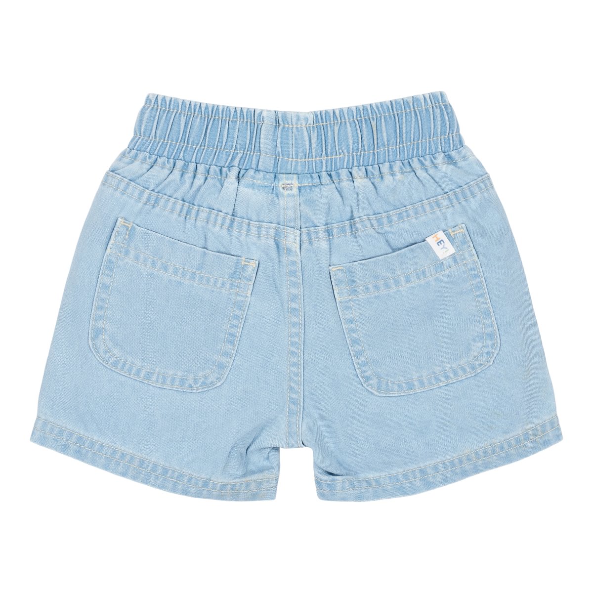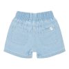 Short van denim in het lichtblauw. Short heeft steekzakjes aan de voorkant en twee achterzakjes en een volledige elastieke broekband. Stofsamenstelling is biologisch katoen(78%) en polyester(28%). Comfortabel en goed draag- en wasbaar. (OEKO TEX = Veiligheid Standard)
