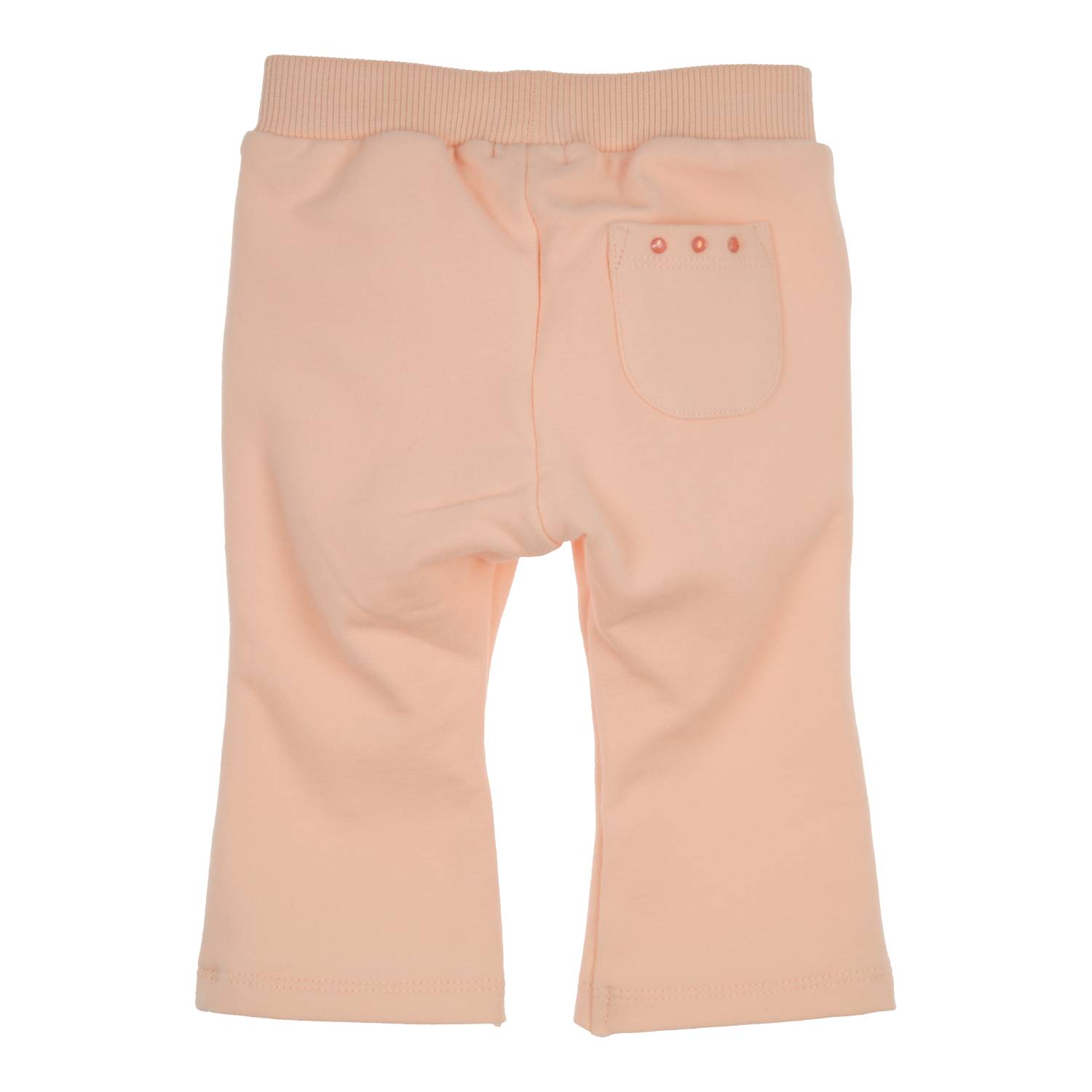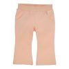 Broekje sweatstof met flared pijp in het abrikoos. Volledig elastieke broekband met steekzakjes en een enkel achterzakje. Stofsamenstelling biologische katoen(93%)en elastaan(7%). Comfortabel en goed draag- en wasbaar.