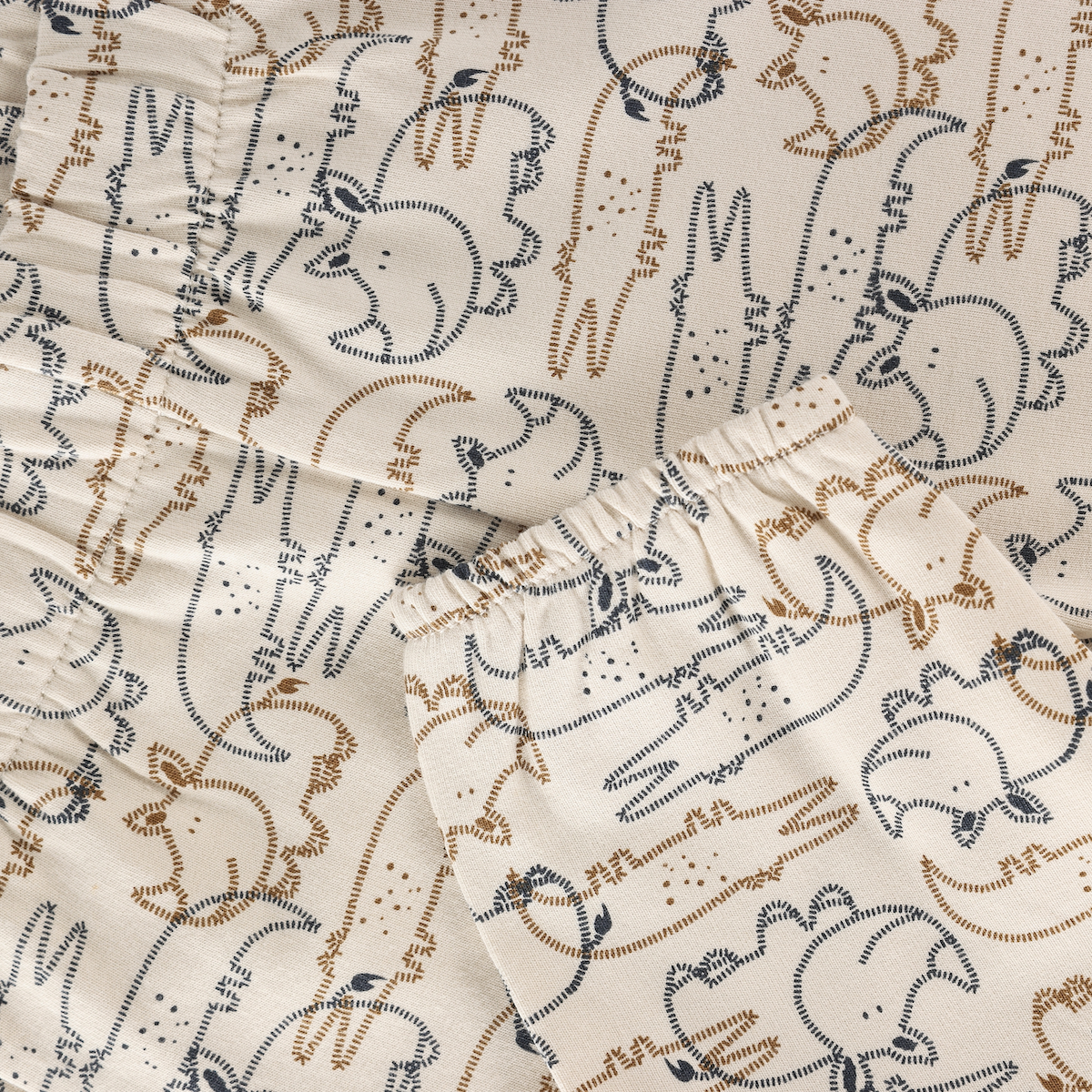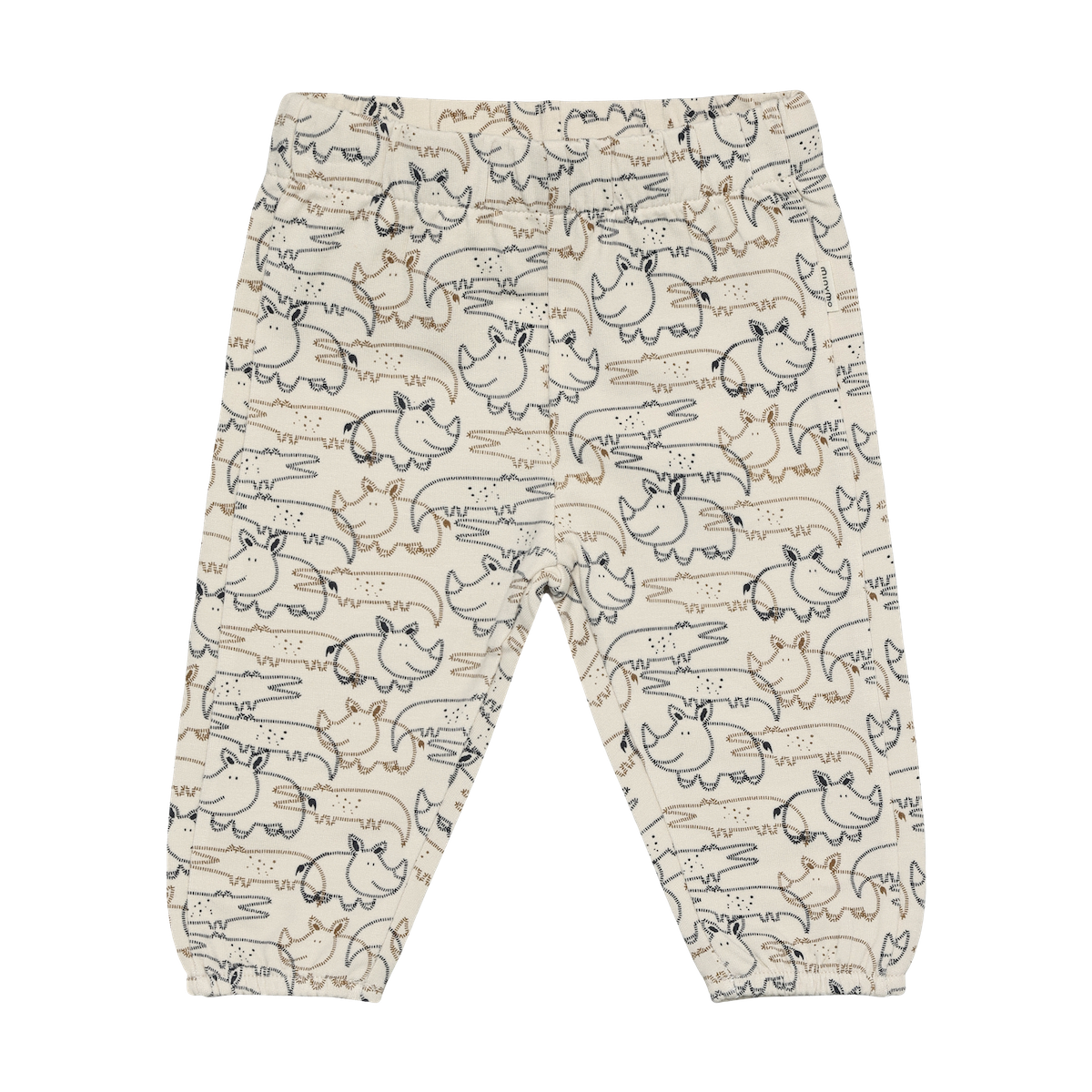 Broekje in het off-white met een all-overprint van wilde dieren.