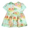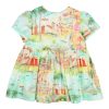 Jurk met all-over print van een strandthema. Jurk is volledig gestoffeerd en heeft een rugsluiting met knoopjes. Stofsamenstelling katoen(100%). Comfortabel en goed draagbaar.