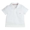 Polo piqué korte mouw in het wit met beige logo. volledig katoen(100%) Comfortabel en goed wasbaar.