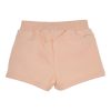 Short van heerlijk biologisch katoen in abrikoos-kleur. Deze heeft twee kleine zakjes aan de voorkant met een klein koordje in de broekband. Stofsamenstelling biologische katoen(93%) en elastaan(7%). Comfortabel en goed draag- en wasbaar.
