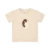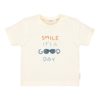 T-shirt met korte mouw in tricot in het off-white met een klein print ‘smile it’s a good day’. Een drukknoopsluiting op de schouder. Stofsamenstelling biologisch katoen(95%) en elastaan(5%). Comfortabel en goed draag- en wasbaar. (OEKO TEX = Veiligheid Standard)