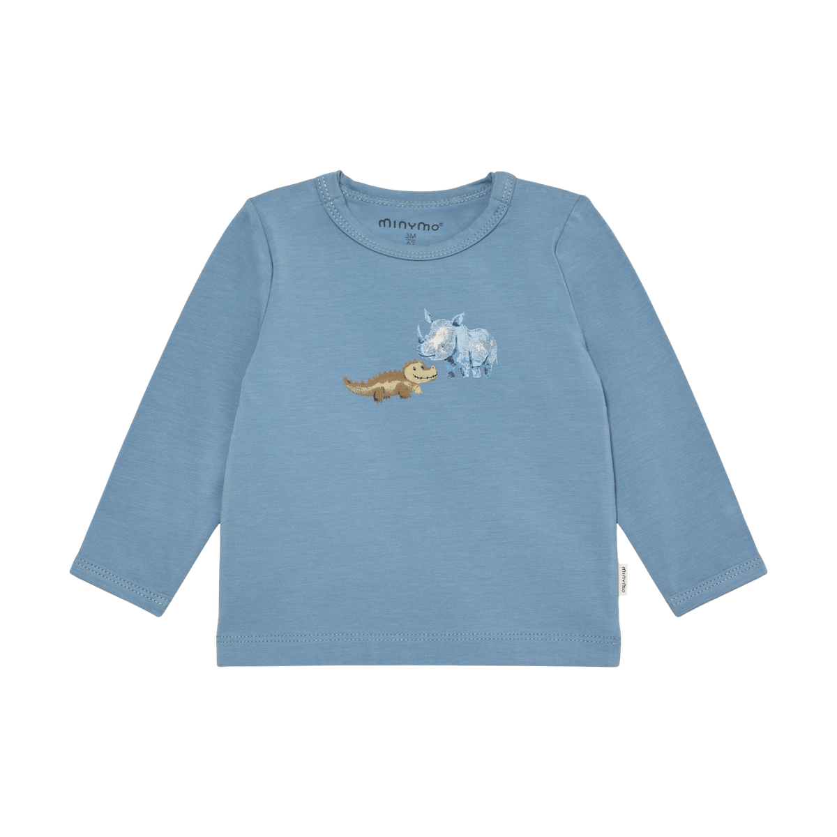 T-shirt lange mouw in het blauw met een print van ‘wilde dieren’.