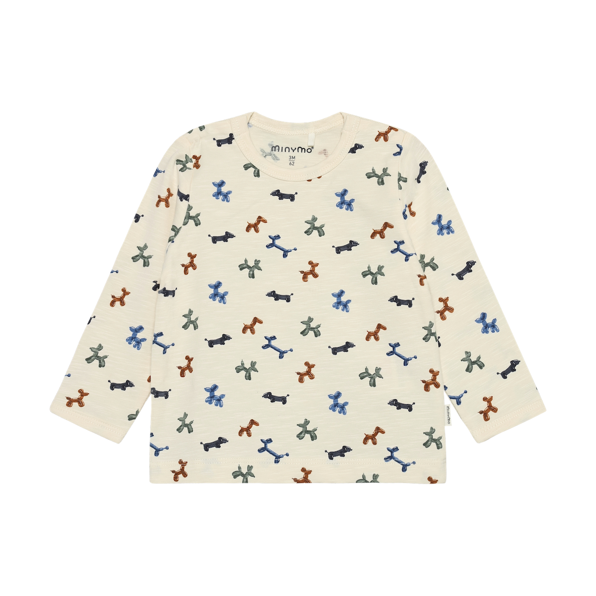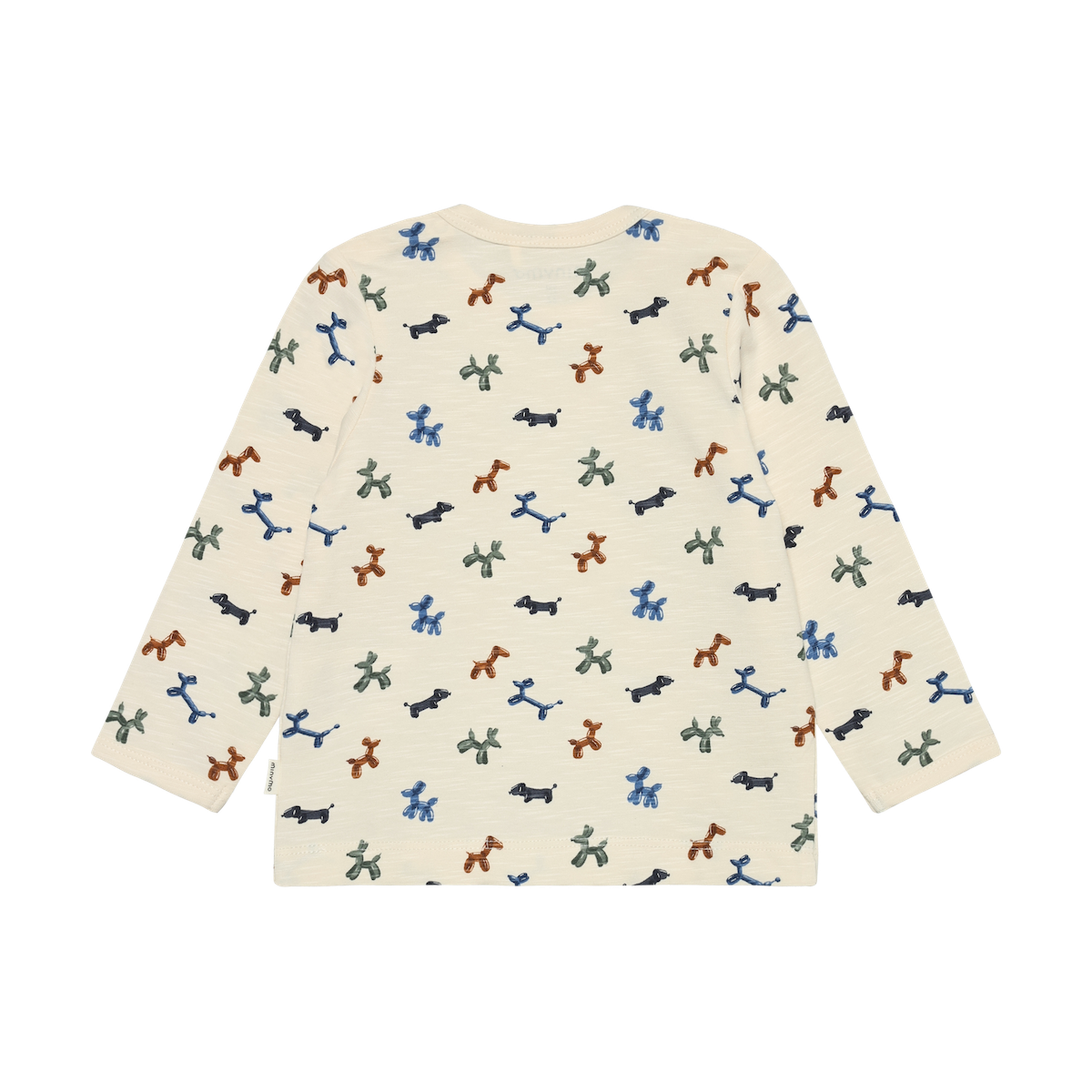 T-shirt lange mouw in het off-white met een print van ‘ballonhondjes’.
