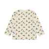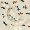 T-shirt lange mouw in het off-white met een print van ‘ballonhondjes’. Drukknoopsluiting op de schouders en is gemaakt van GOTS-katoen(95%) en elastaan(5%). Comfortabel en goed draag- en wasbaar. (GOTS = Global Organic Textile Standard)