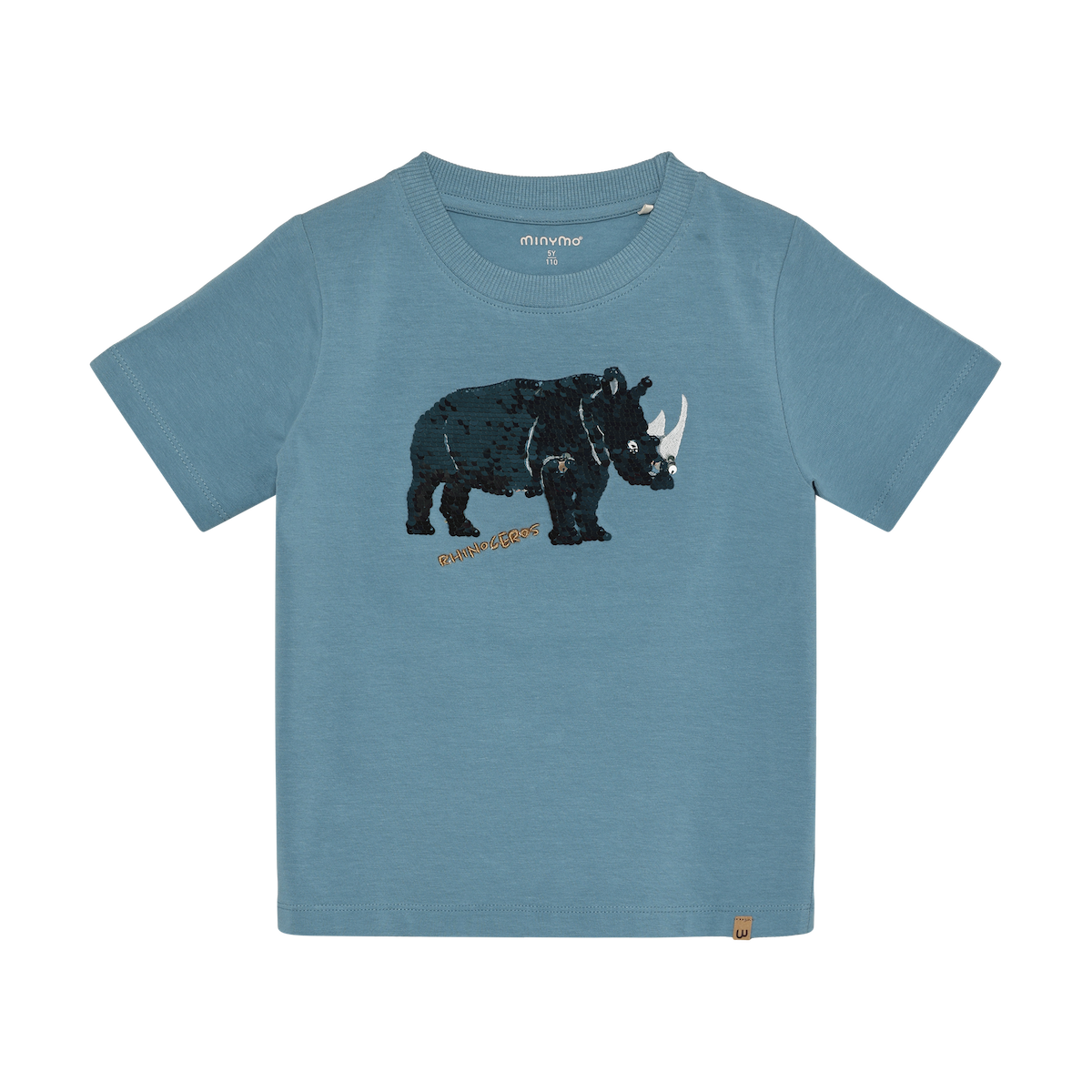 T-shirt korte mouw in het blauw met een afbeelding van een neushoorn.